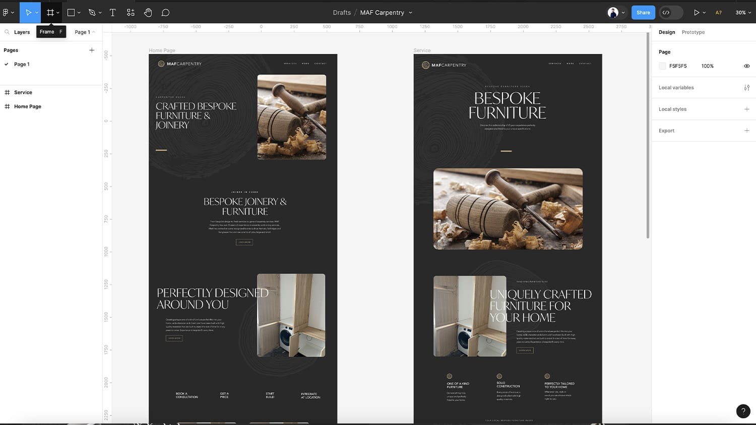 MAF Carpentry are a talented bespoke joinery and bespoke furniture company, from bespoke design to finish services to general carpentry services. MAF Carpentry has over 25 years of experience in carpentry and joinery services. Mark has worked on some recognised brands such as Harrods, Selfridges and Sunglasses Hut and can cater to all jobs, large and small. Mark wanted to elevate his brand and cater to a high-end audience looking for specialist bespoke furniture and joinery services.